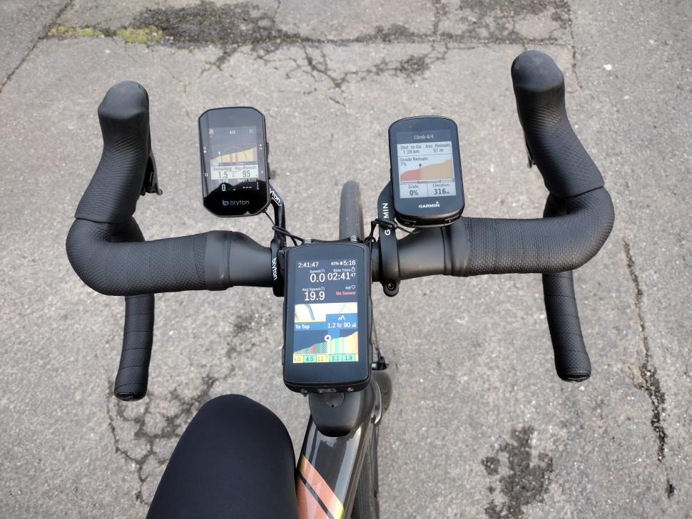• ClimbPro ascent planner shows remaining ascent and grade on every climb